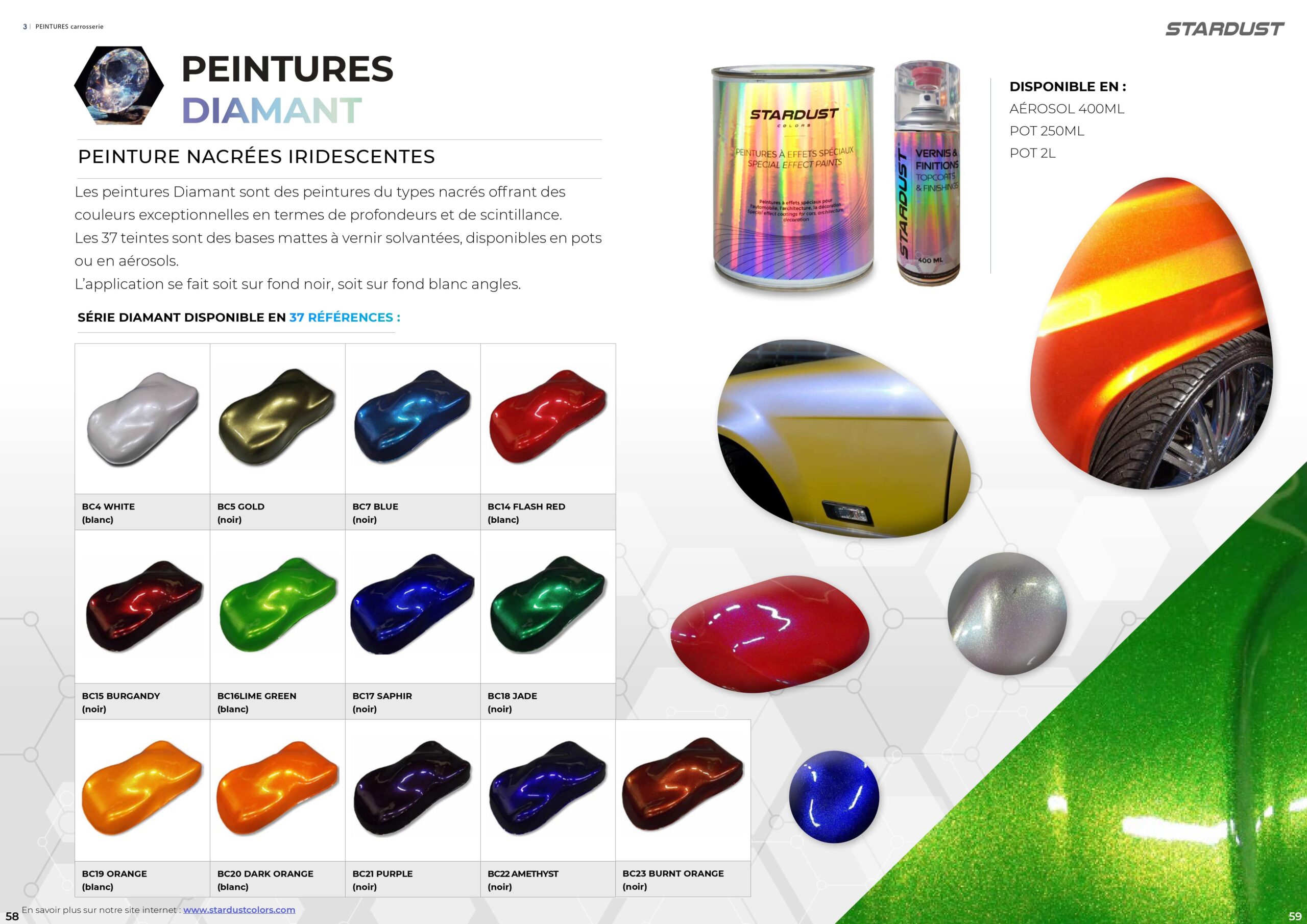 Stardustcolors is a manufacturer of special-effect paints / primers / varnishes, as well as paints for airbrushes (Stardust Pro / Hikari RC / Hikari Toys / Graphic / Sparkle range). Discover and easily download all the color cards and presentation brochures for our product ranges below, with the option of viewing and downloading high-resolution color images / or downloading PDFs.
